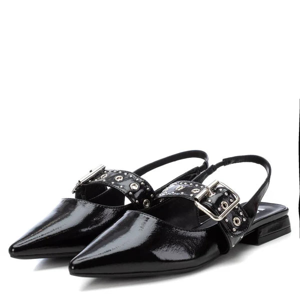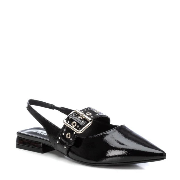 Ballerina da donna, marchio Xti. Realizzata in pelle verniciata. Modello a punta con cinturino con fibbia. Suola piatta e antiscivolo. Questo modello è certificato vegano dall'organizzazione mondiale PETA (Animal Rights Organisation).