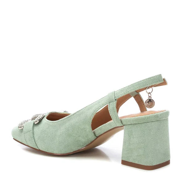 Heeled shoe, from the Xti brand. Made in suede fabric with a beautiful detail with rhinestones, undoubtedly the focus of all your looks. Fastening with a buckle to facilitate the putting on and adjustment. Non-slip rubber sole. This model has been certified vegan by the worldwide organisation PETA (animal rights organisation).